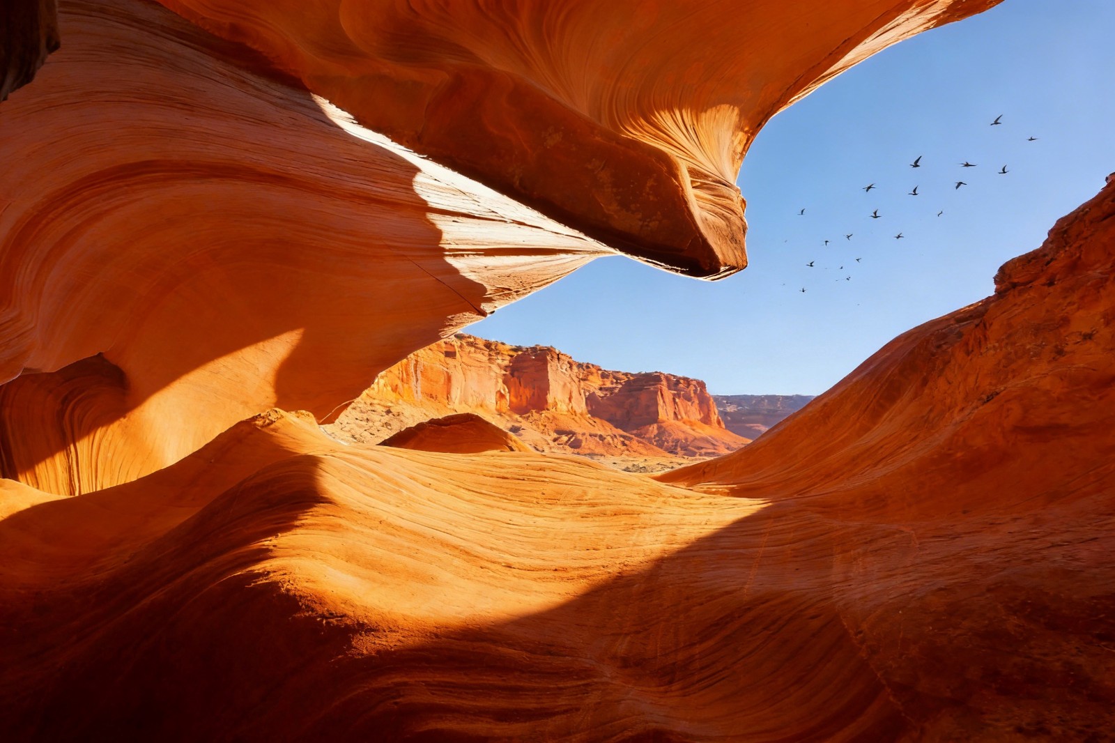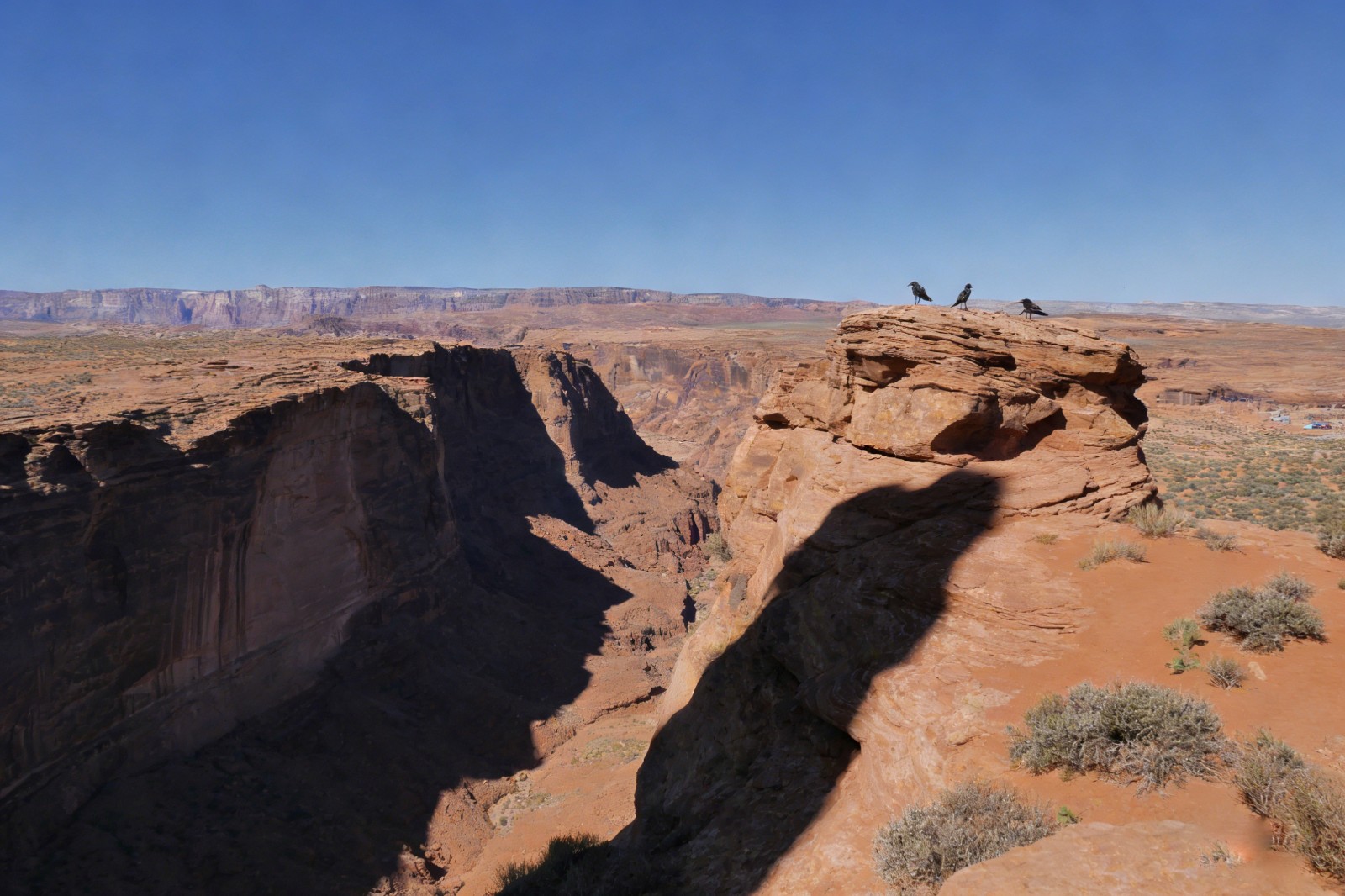 正午的阳光炽烈如火,把峡谷烤得发烫,崖壁的色彩却愈发浓烈。赭红的砂岩在阳光下泛着玛瑙般的光泽,浅黄的石灰岩与深灰的玄武岩交错,像上帝打翻的调色盘。站在悬空玻璃观景台上,脚下是透明的玻璃,深渊在咫尺之外,科罗拉多河细如银线,在谷底静静流淌。此刻的峡谷褪去了晨雾的朦胧,露出最磅礴的轮廓:垂直的崖壁如刀削斧凿,层层叠叠的岩层记录着地球的脉动,那些因地壳运动隆起的褶皱,因河水冲刷形成的阶地,都是自然力量的见证。有人说,大峡谷是地球的伤口,可这伤口里,却藏着最壮丽的重生 —— 每一次岩层的断裂,每一次河水的冲刷,都在塑造新的地貌,让这片土地在毁灭与新生中轮回,成了永恒的风景。